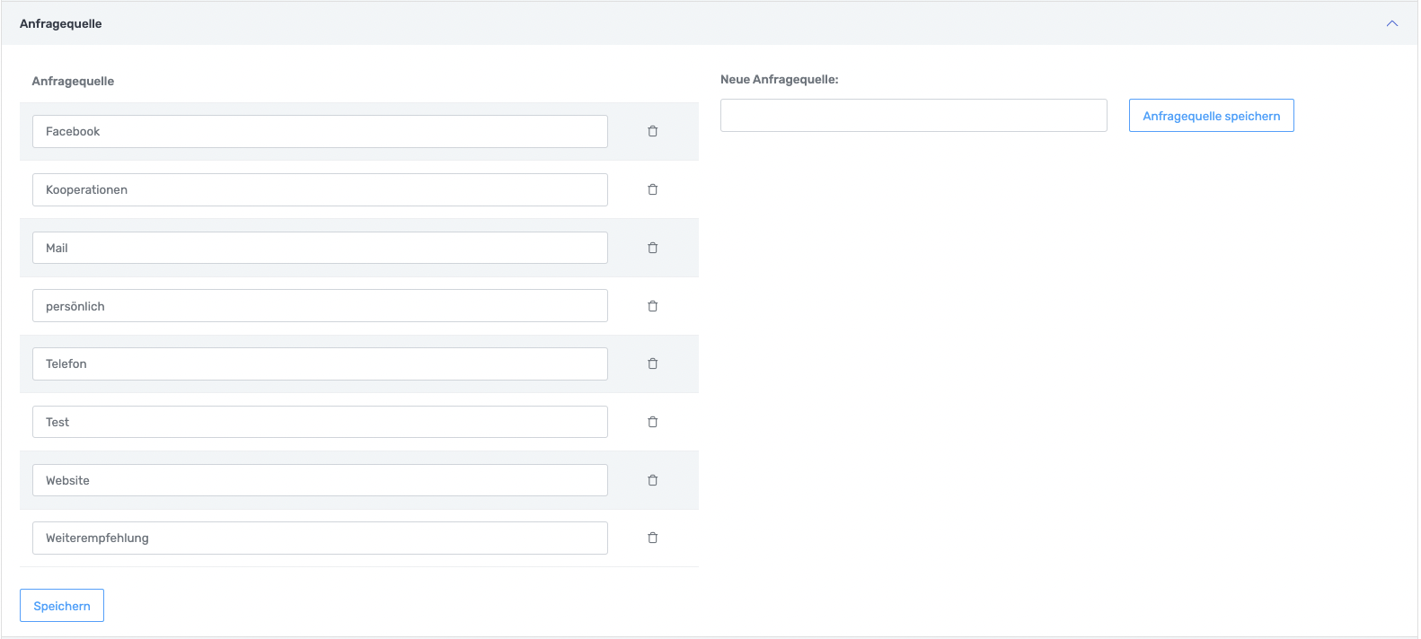 Bei Jobs und Hochzeiten ist es möglich eine Anfragequelle anzugeben, sprich woher kam die Anfrage. Dies ist wichtig für die Auswertung->Jobs.