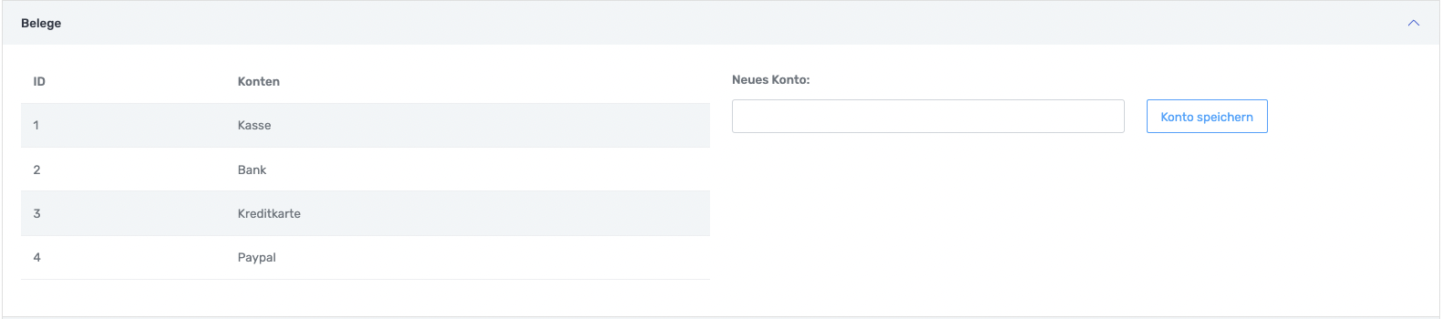 Hier können die Konten für die Belege angegeben werden. So kann man jedem Beleg das passende Konto zuweisen.