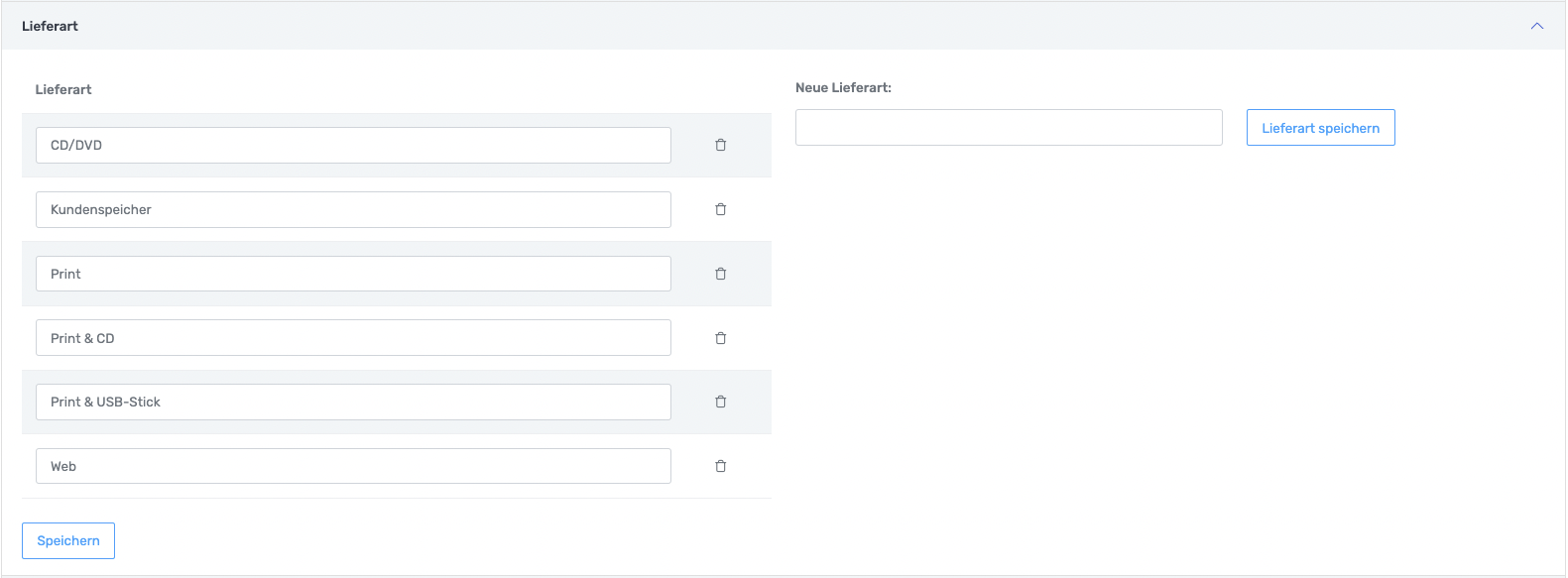 Die Lieferart wird bei Rechnungen benötigt. Bei Rechnungen kann angegeben werden, wie z.B. die Fotos übergeben wurden.