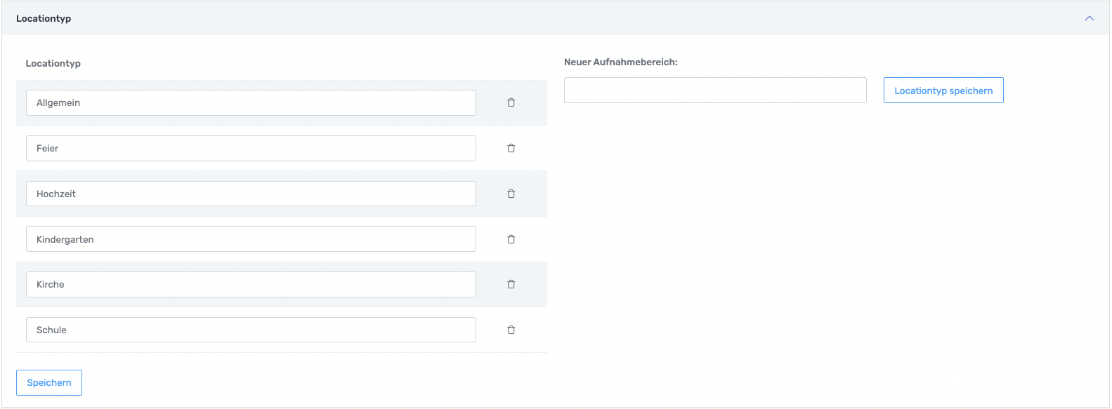Auch Locations können kategorisiert werden, diese können unter Locationtyp angepasst werden.