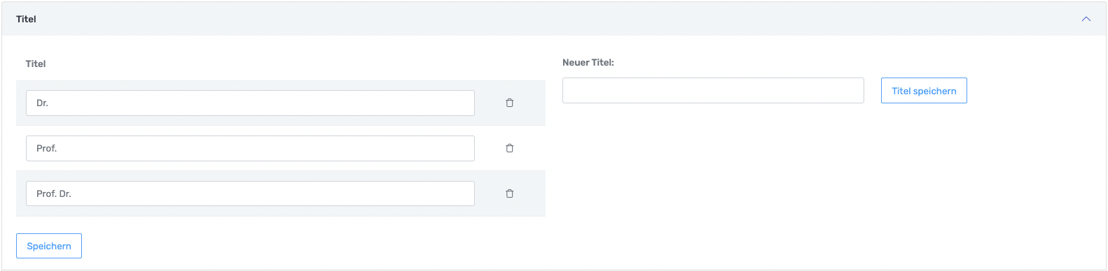 Hier können Titel für Kontakte wie Dr., Prof. Magister, etc. eingetragen werden.