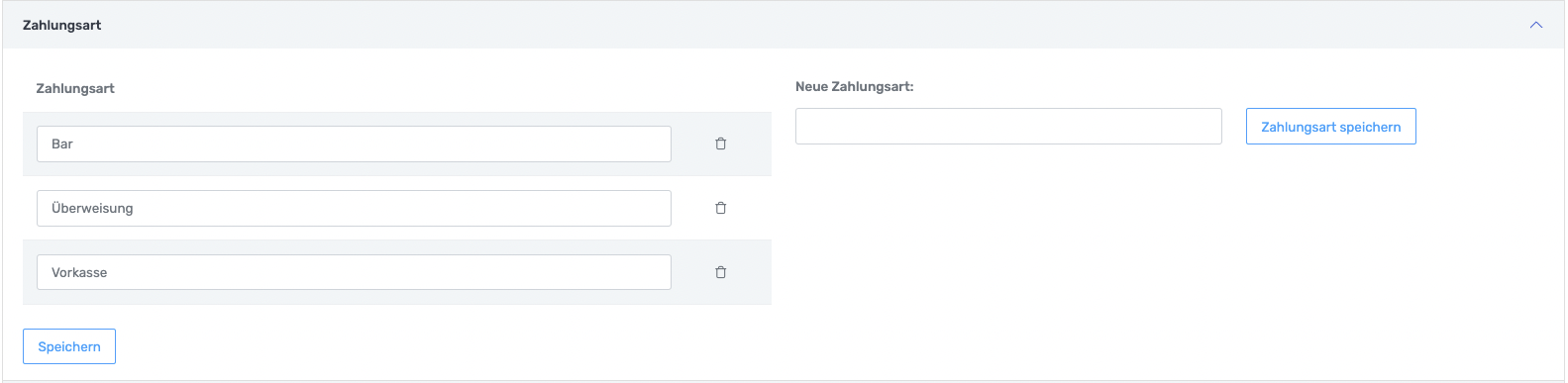 Auch die Zahlungsart wir bei Rechnungen verwendet. Bei Rechnungen muss angegeben werden, wie der Kunde bezahlt. Das ist wichtig für Belege und Auswertungen.