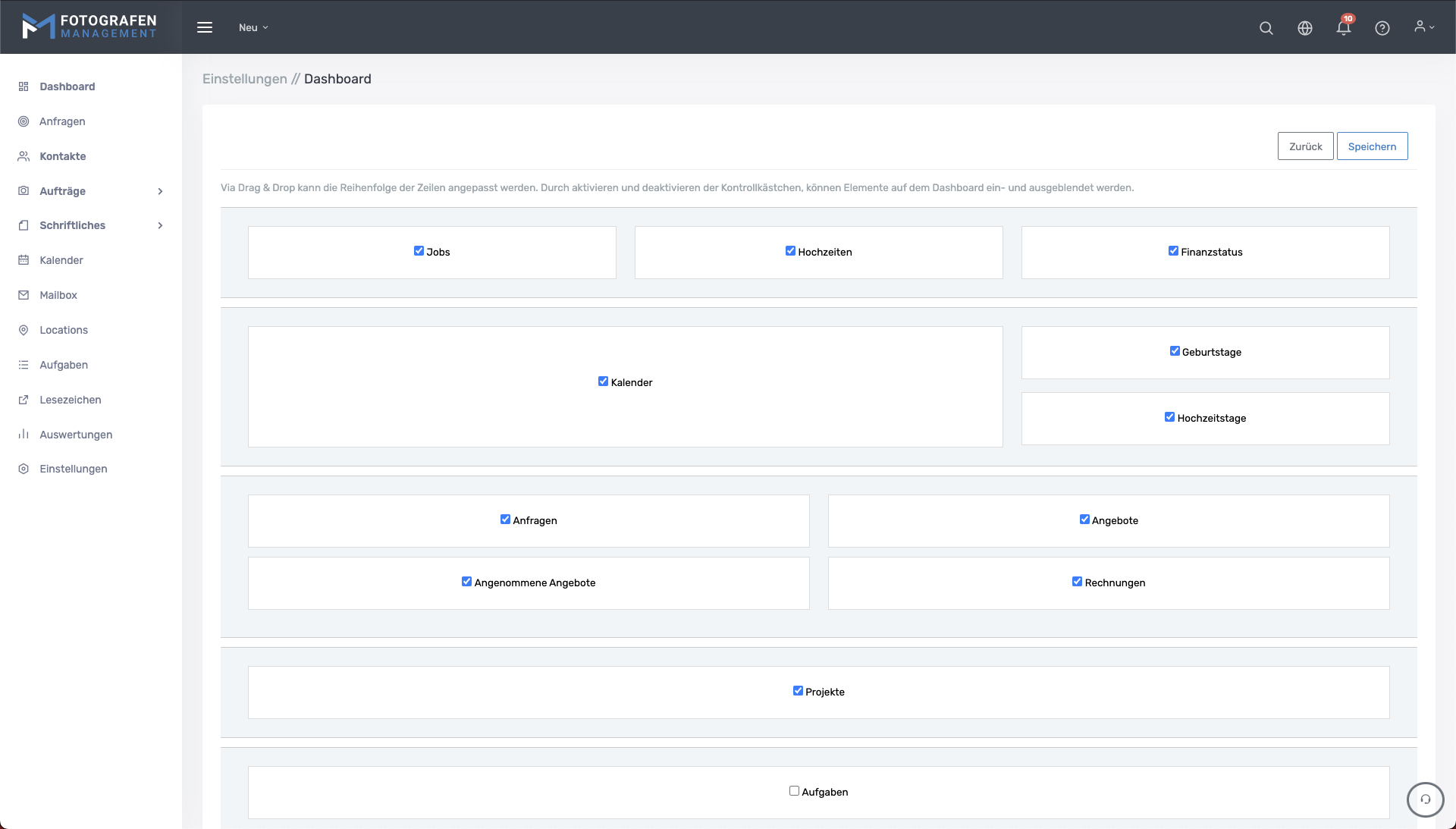 Hier kann das Dashboard nach seinen Bedürfnissen angepasst werden.