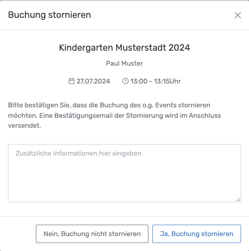Hier sieht man nochmal den eigenen Namen, sowie den Zeitslot, der abgesagt werden soll.